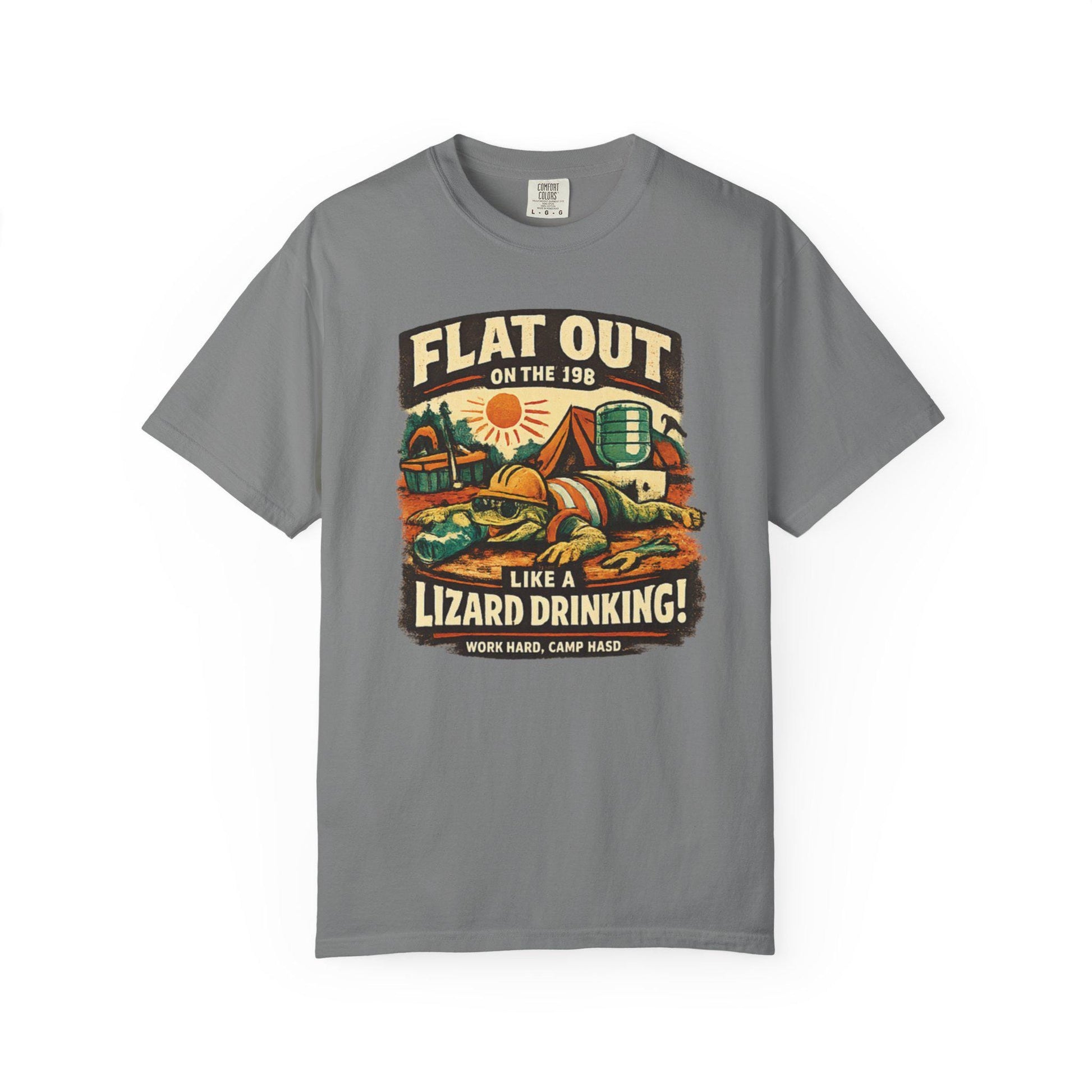 Flat Out Like a Lizard Drinking T-Shirt - Aussie Slang Tee - Retro Camper Desert Art - Australian Gift - Unisex Cotton