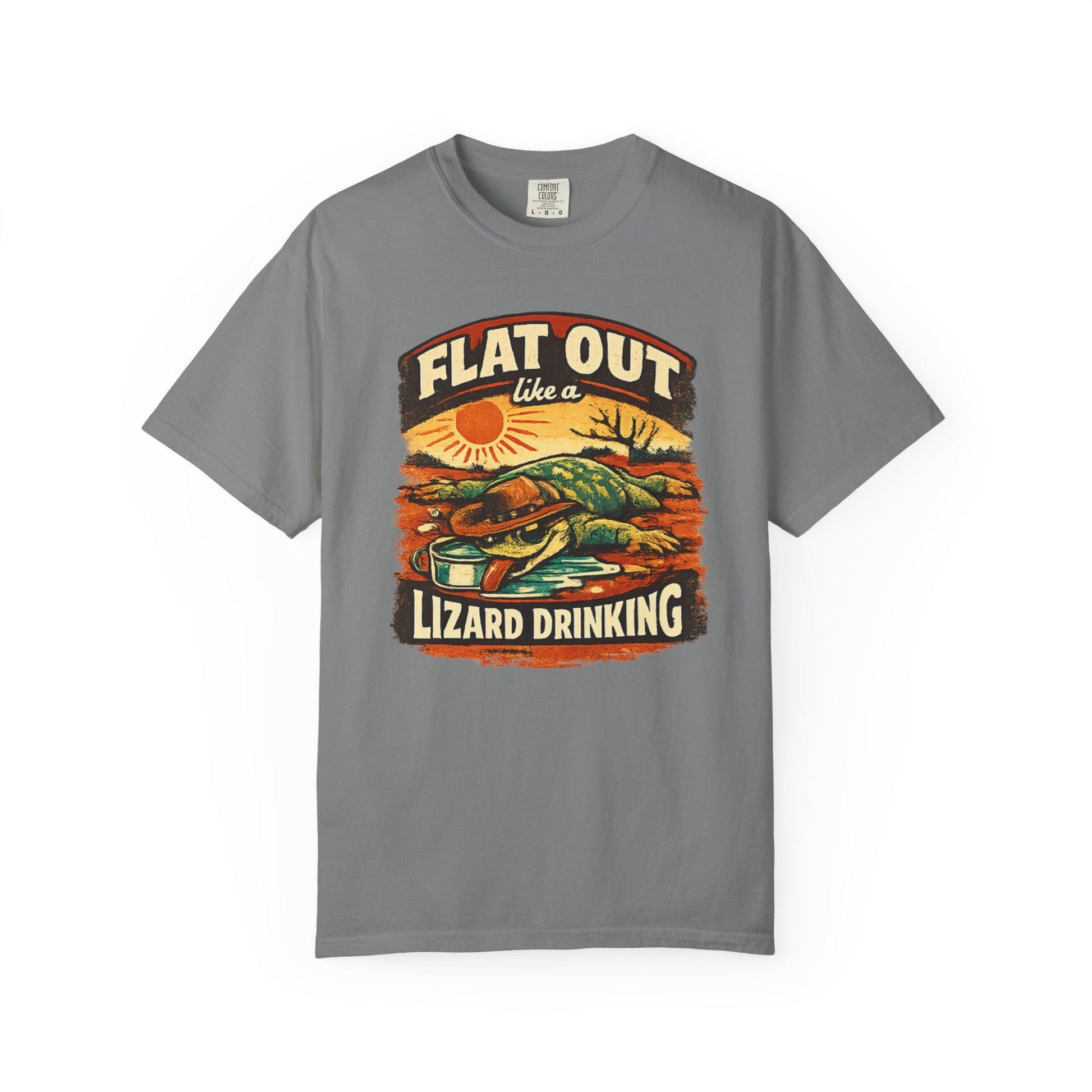 Flat Out Like a Lizard Drinking T-Shirt - Aussie Slang Tee - Retro Desert Lizard Graphic - Australian Gift - Unisex