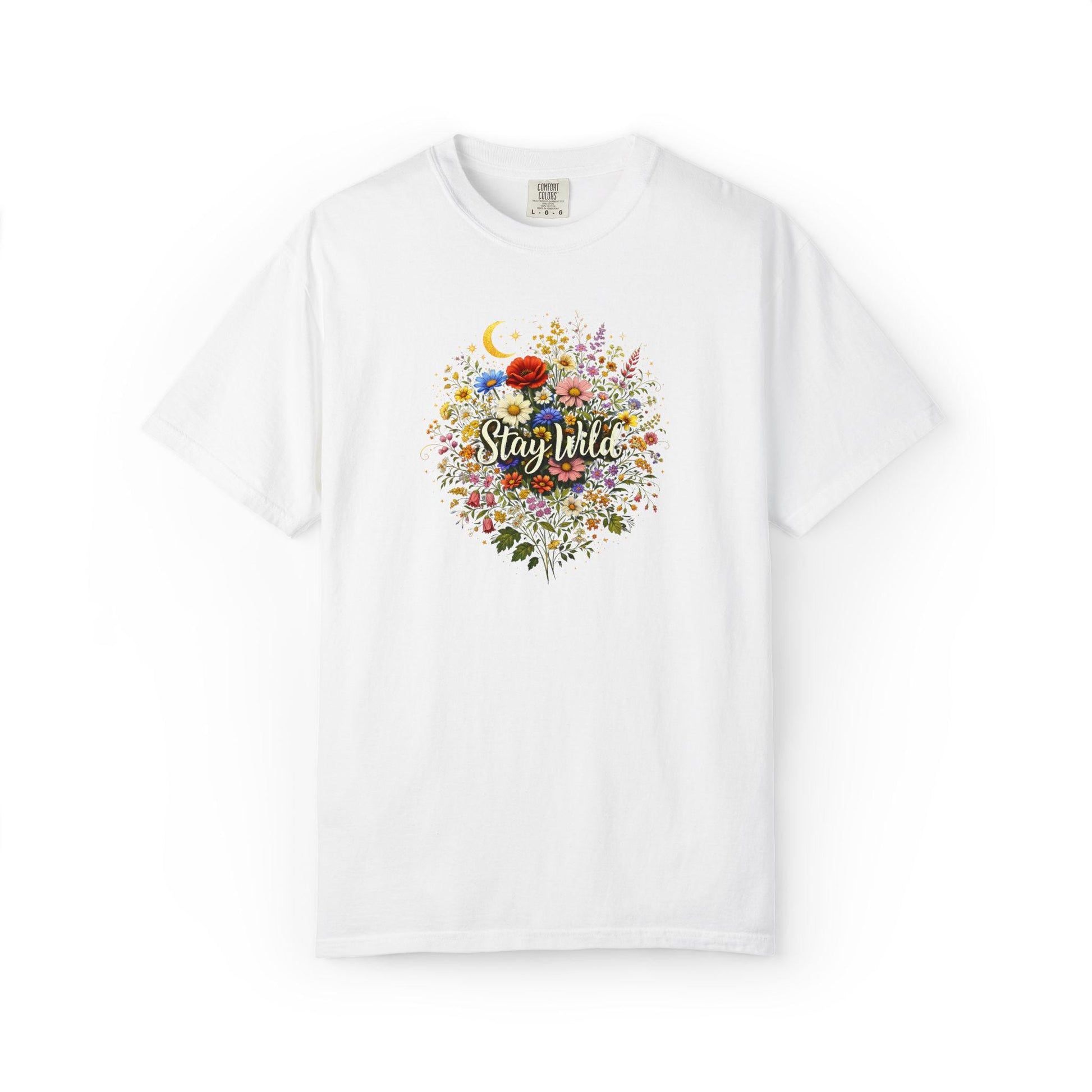 Stay Wild floral moon bouquet T-shirt | botanical typography