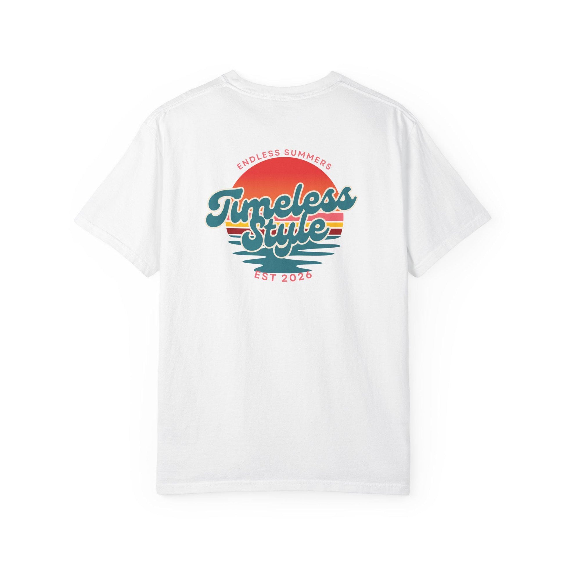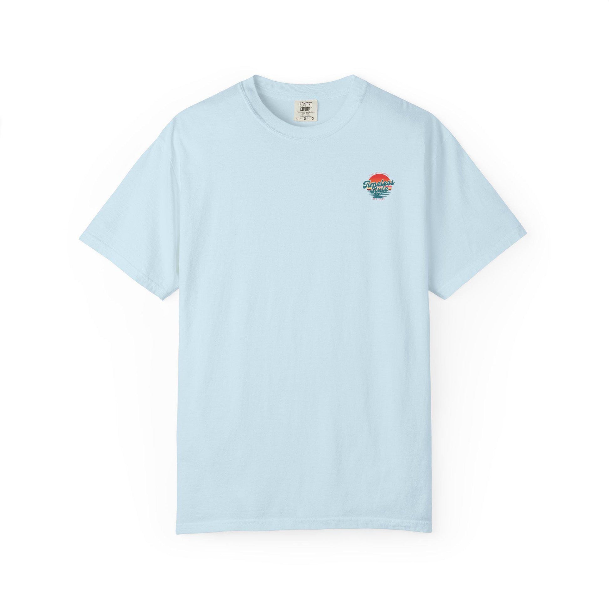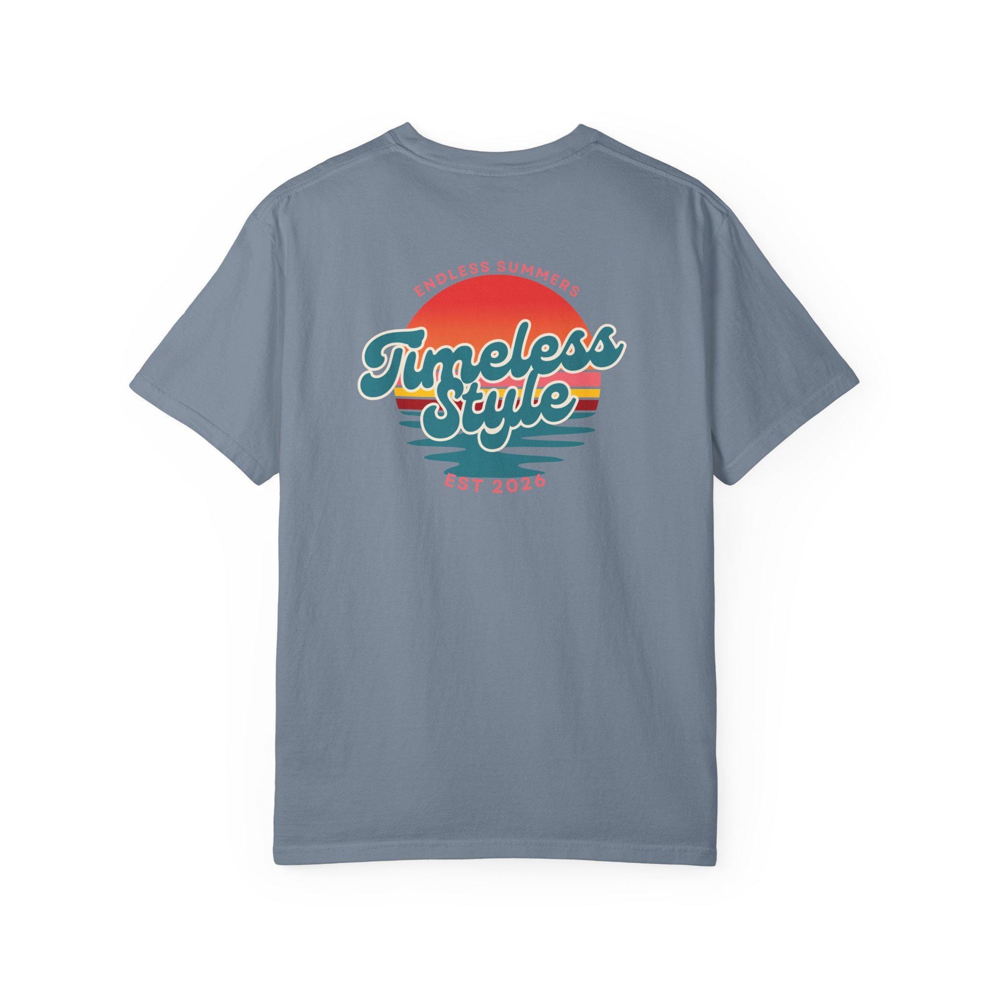 This relaxed, garment-dyed tee feels like a favorite from the first wear. The heavyweight cotton has a soft, lived-in hand thanks to post-construction dyeing, giving the color depth and subtle texture. A small chest emblem and a sunset-inspired back graphic bring a nostalgic, beach-drive energy—bright but worn-in, like long afternoons and warm evenings. It sits loose across the shoulders and drapes casually, an easy layer for slow walks, road trips, or backyard hangs. Sizes span S–4XL and the sewn-in label keeps the neckline clean. Let it age with you: the fabric and double-needle seams are built to last and grow more comfortable over time.