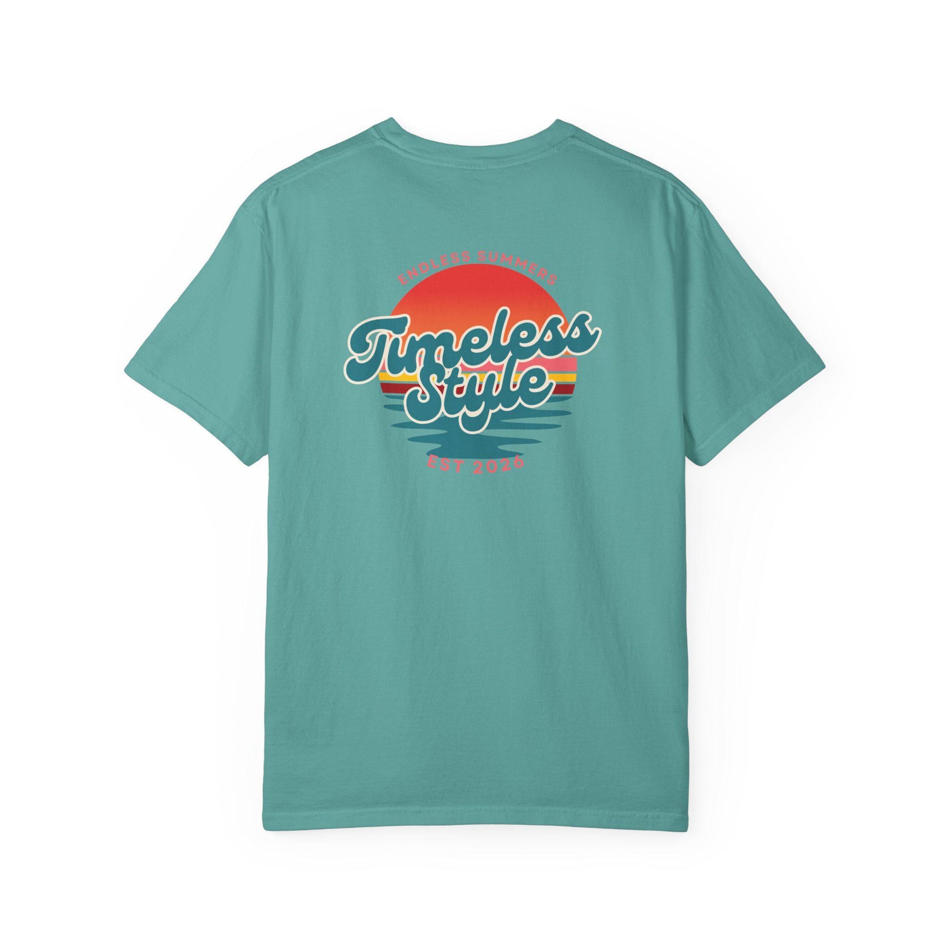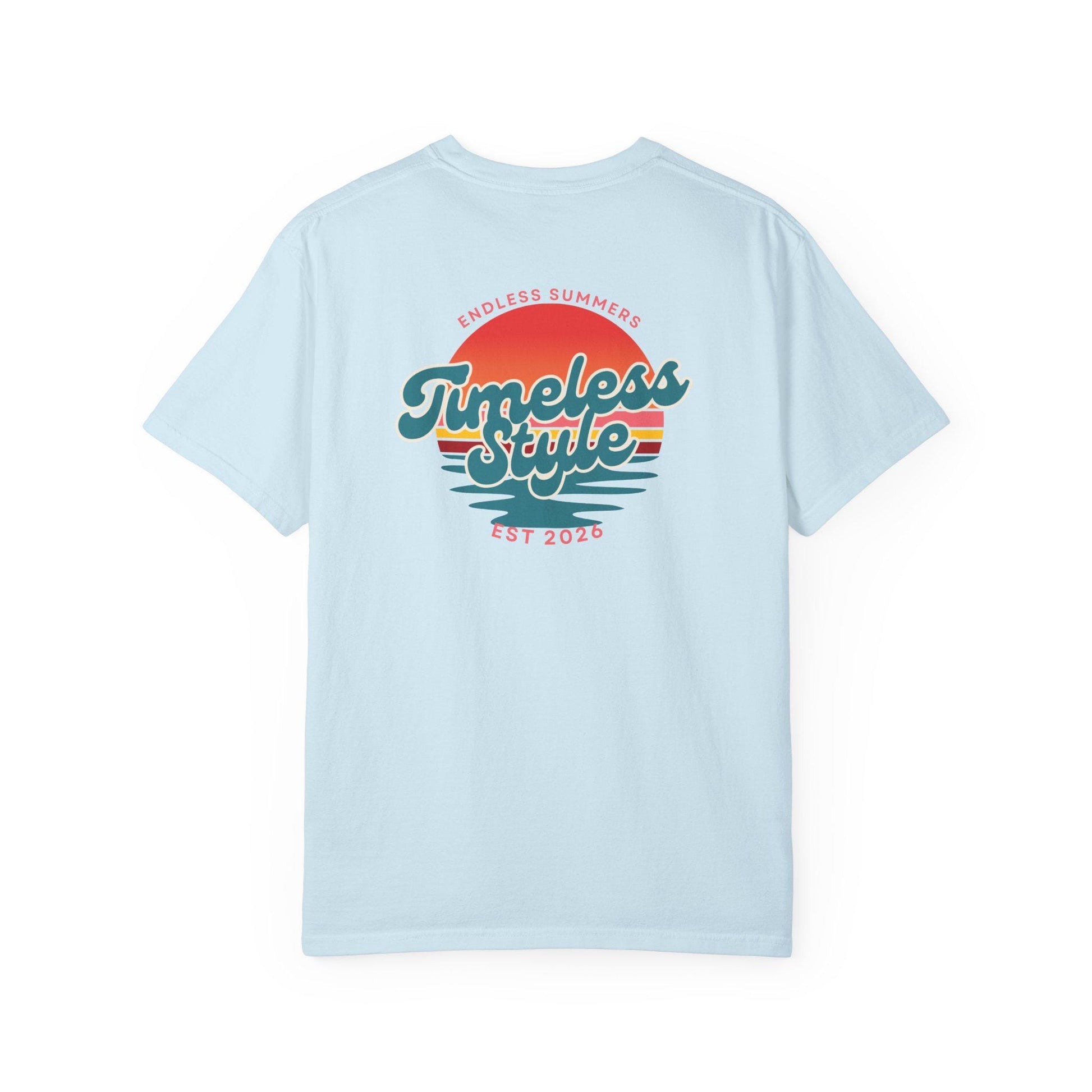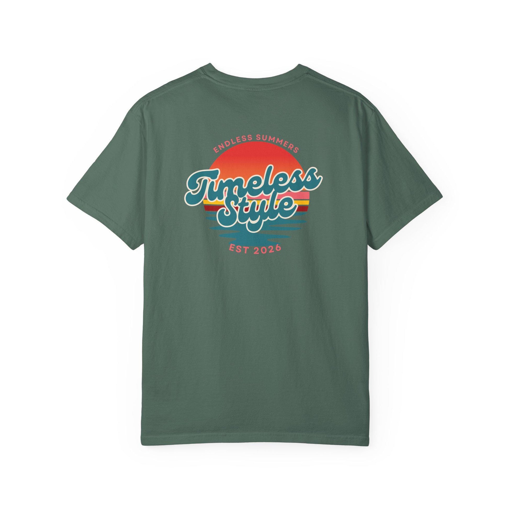 This relaxed, garment-dyed tee feels like a favorite from the first wear. The heavyweight cotton has a soft, lived-in hand thanks to post-construction dyeing, giving the color depth and subtle texture. A small chest emblem and a sunset-inspired back graphic bring a nostalgic, beach-drive energy—bright but worn-in, like long afternoons and warm evenings. It sits loose across the shoulders and drapes casually, an easy layer for slow walks, road trips, or backyard hangs. Sizes span S–4XL and the sewn-in label keeps the neckline clean. Let it age with you: the fabric and double-needle seams are built to last and grow more comfortable over time.